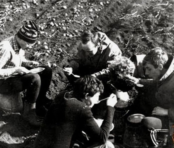 Ездили с удовольствием на уборку картошки.Баловались больше чем собирали.А как вкусна она была приготовленная на костре…