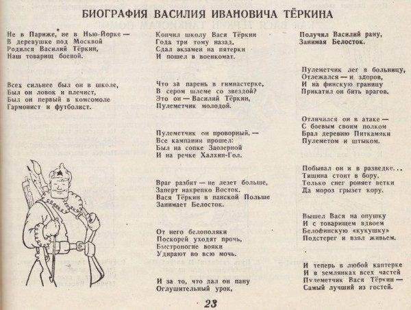 Одна из страниц первого издания о Василии Тёркине, увидевшего в свет в 1940 году