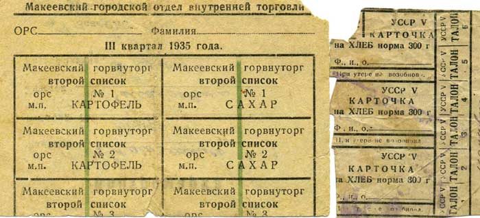В 1935 году карточки на хлеб и другие продукты были отменены. Одновременно вводилось ограничение по отпуску товаров в одни руки. Причем, если в 1936 году покупатель мог купить 2 кг мяса, то с апреля 1940 года — 1 кг, а колбасы вместо 2 кг в одни руки разрешили давать только 0,5 кг. Количество продаваемой рыбы уменьшили с 3 кг до 1 кг. А масла вместо 500 г по 200 г.