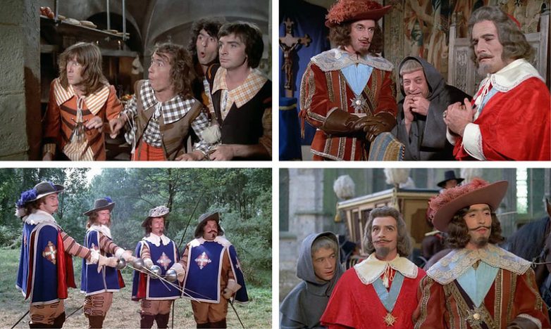 Десятое место. «Четыре мушкетёра» — историко-приключенческая эксцентрическая комедия, реж. Андре Юнебель в которой бессмертный роман Александра Дюма безбожно перелопатили, превратив в бурный водопад гэгов, сопровождающих необыкновенные приключения, нет, не прославленных мушкетеров, а их верных оруженосцев.