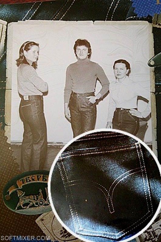Но самое главное свойство фирменных джинсов тех лет – «они должны были тереться». Когда выбирали джинсы, то проверяли их на “фирменность” при помощи мокрой спички – терли ей по ткани. Посиневшая спичка означала, что со штанами все о’кей. Если нет – джинсы контрафакт.