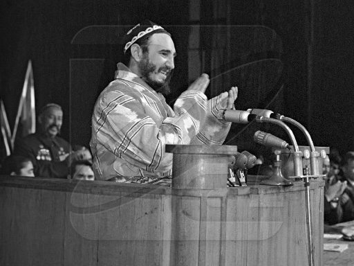 Команданте примерил тюбетейку и национальный халат и выступил перед коммунистами Узбекистана