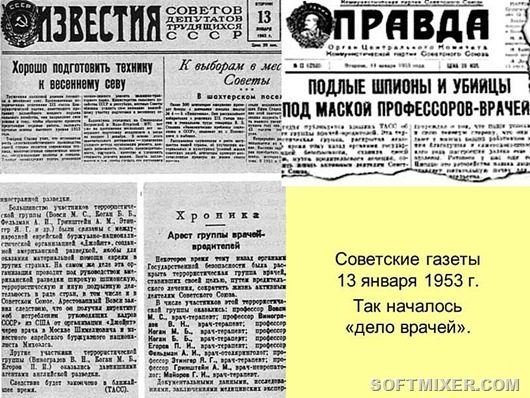Примечательно, что двое последних считались личными врачами Сталина, но тут, как говорится, «ничего личного». «Убийц в белых халатах» обвинили в «организации сионистского заговора» и стремление «при лечении сократить жизни руководителей Партии и Правительства».