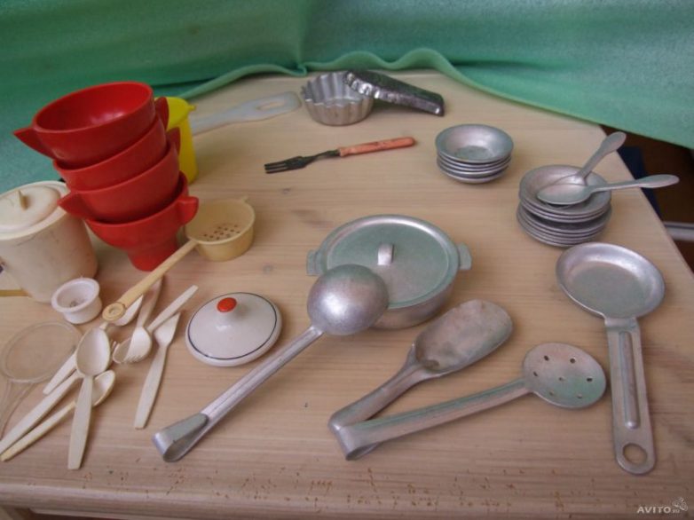 Круто! барабан и дудочка, маленькие пупсики и миниатюрная куколка у которой почему то двигались только руки)) Пластиковый Ванька-неваляйка и святое: посудка разных форм, цветов и материалов)