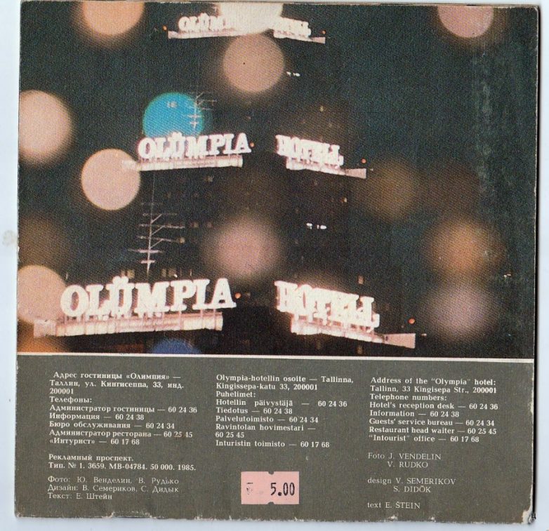 Рекламный буклет гостиницы " Олимпия ", Таллин, 1985 год