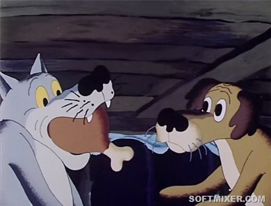 “Я хотел, чтобы была внятно рассказана история, но в итоге некоторые вещи получились скороговоркой, — вспоминает режиссер. — Например, сцену, где волк с псом сидят на горе и воют на луну, хотелось бы сделать длиннее. В общем, чисто психологически многие вещи можно было удлинить”. Однако глава киностудии настоял на том, чтобы мультфильм вышел коротким.