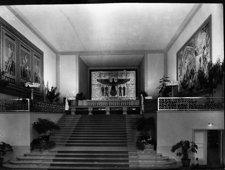 Он был самым дорогим на выставке: более тысячи вагонов везли из Берлина в Париж 10 тысяч тонн материала, ибо павильон должен был оставаться «куском священной немецкой земли» и поэтому возведен «исключительно из германского железа и камня».