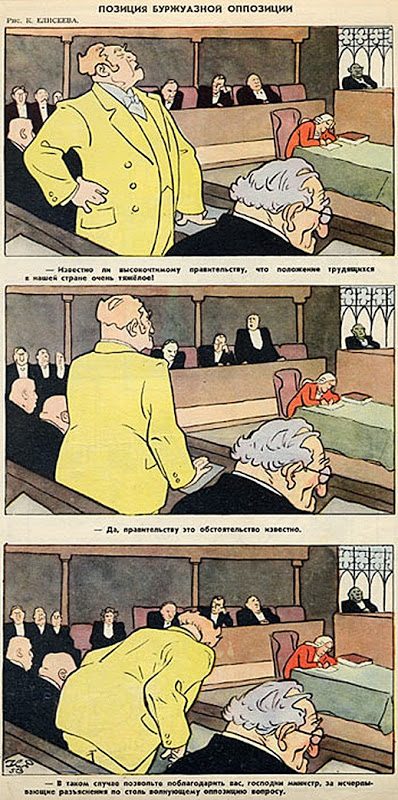 Большую помощь в устранении этих недостатков оказал советским сатирикам 30-х годов А. М. Горький. Он советовал чаще и шире использовать такой художественный прием, как противопоставление, подчеркивание контрастов между миром капитализма и миром социализма.