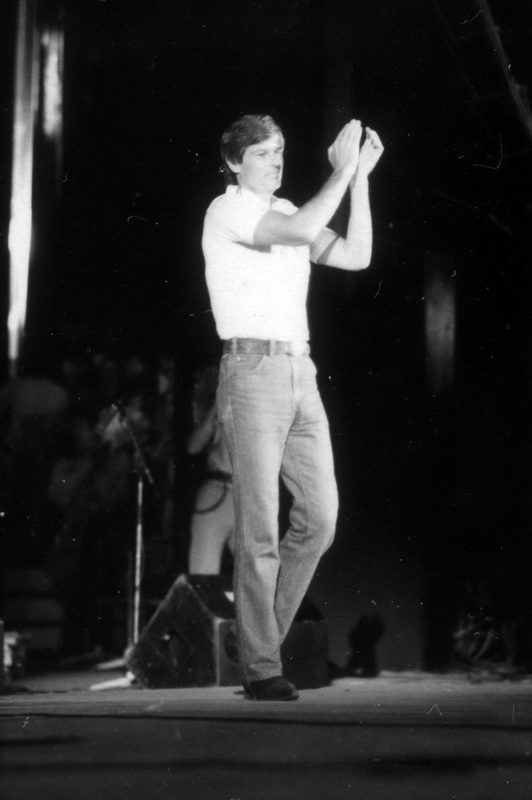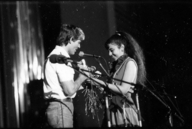 Дин «Красный Элвис» Рид и Алла Пугачёва на концерте в Зелёном театре в Москве на Фестивале молодёжи и студентов 1985 года.