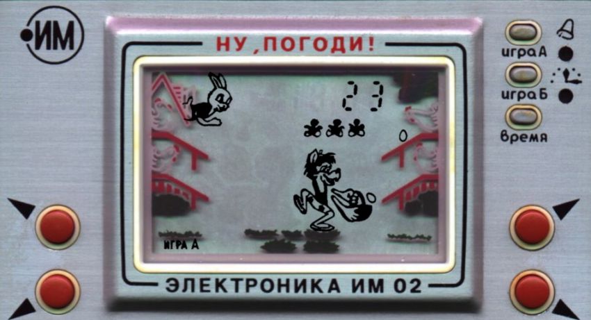 Главный игровой гаджет 1980-ых. Волк должен поймать в корзину как можно больше яиц, «поставляемых» курами с четырех сторон. За каждое пойманное яйцо засчитывалось очко, за каждое разбитое яйцо – очко отнималось. Набрав 200 очков, игрок получал призовую игру. Во время игры периодически в верхнем углу экрана являлся заяц, и тогда можно было заработать бонусные очки. Интересно, что среди советских психологов возникали вопросы к «Ну, погоди!»: было мнению, что дети в процессе игры начинают себя ассоциировать с негативным персонажем – волком, и что это может сказаться на правильности их социальных установок.