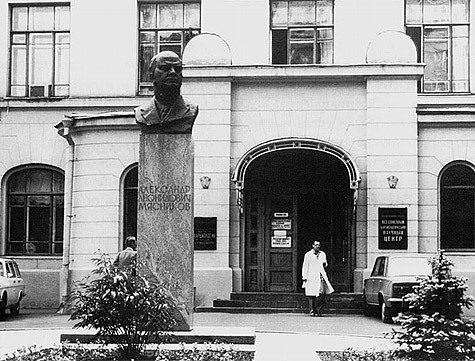 Памятник Александру Мясникову у входа в Институт кардиологии.* * *