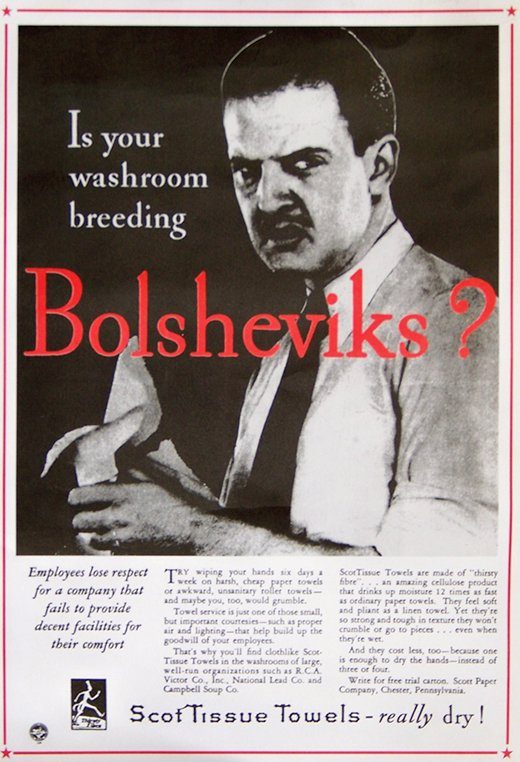 Реклама бумажных полотенец: «Плодишь большевиков в сортире?»