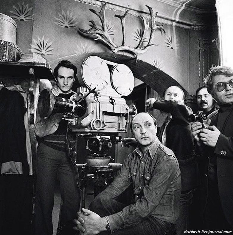 Станислав Говорухин, Владимир Конкин и Владимир Высоцкий на съёмках «Место встречи изменить нельзя»
