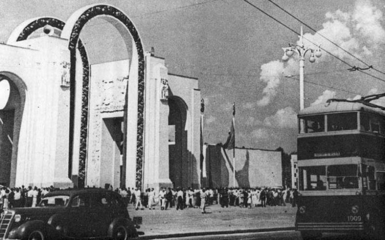 Вот главный вход на ВСХВ 1939 г., который на Олдмосе-Паствю ошибочно датировали вслед за Висконсинским сайтом 1959-1960 г.: