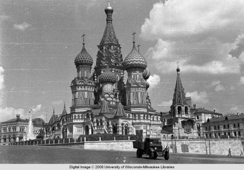Автором съёмки является американский фотограф Харрисон Форман, который сделал в Москве 1939 года многие десятки (если не сотни) интереснейших черно-белых снимков. Но цветной плёнки у него было с собой, видно, маловато.