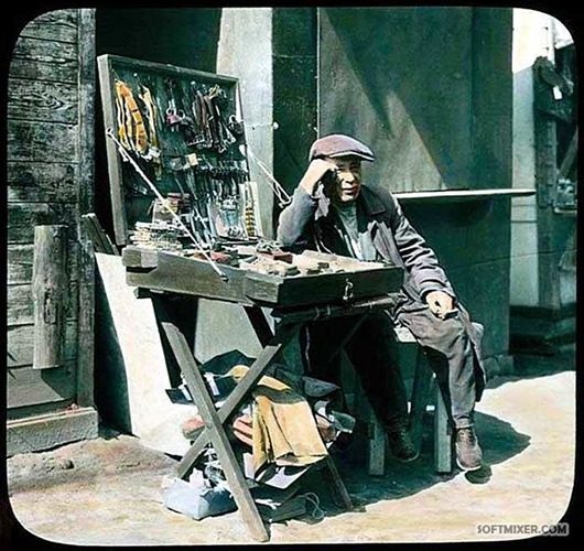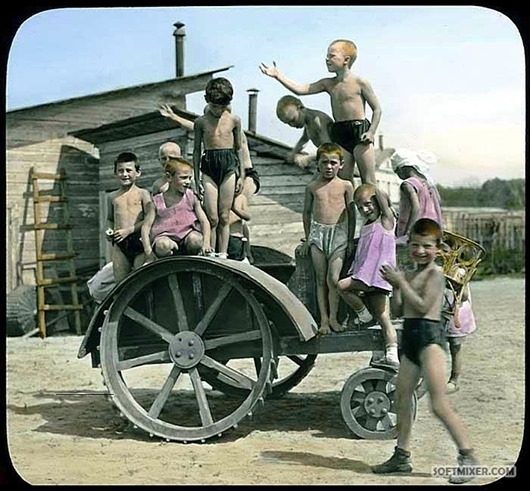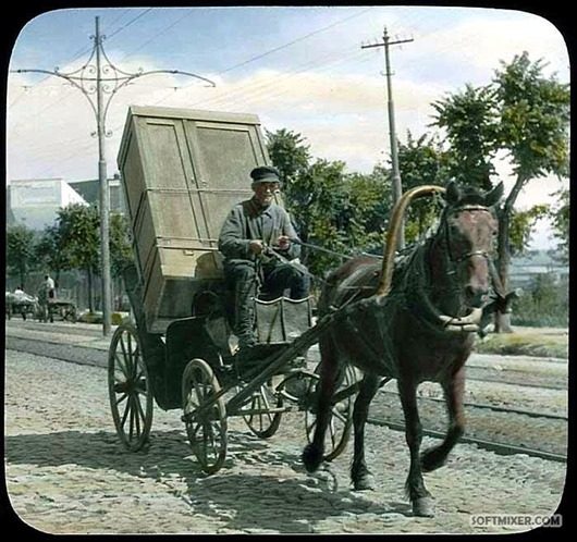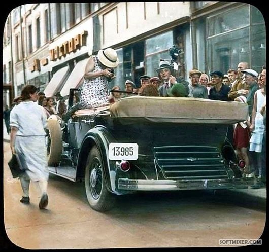 В 1931 году американский фотограф и путешественник Брэнсон ДеКу путешествовал по Советскому Союзу, где сделал около 10 000 снимков для своих лекций. Цветную фотографию в то время еще не изобрели, поэтому фото-пластины для проектора расписывались вручную.