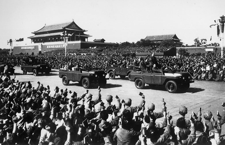 16. Китайский лидер Мао Цзэ-дун, во время митинга на площади Тяньаньмэнь, Пекин, 1966 (Фото Keystone / Getty Images )