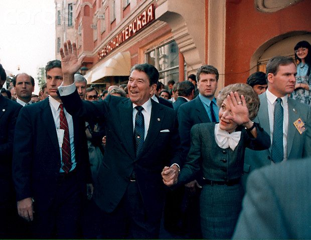 В мае 1988 г. состоялся ответный визит в Москву американского президента, после которого Р.Рейган подобрел и изменил точку зрения по Советскому Союзу, теперь он призывал к пересмотру отношения к СССР, руководимому конкретным лидером, М.С.Горбачевым, поскольку «он отличается от всех русских лидеров, с которыми я встречался.»