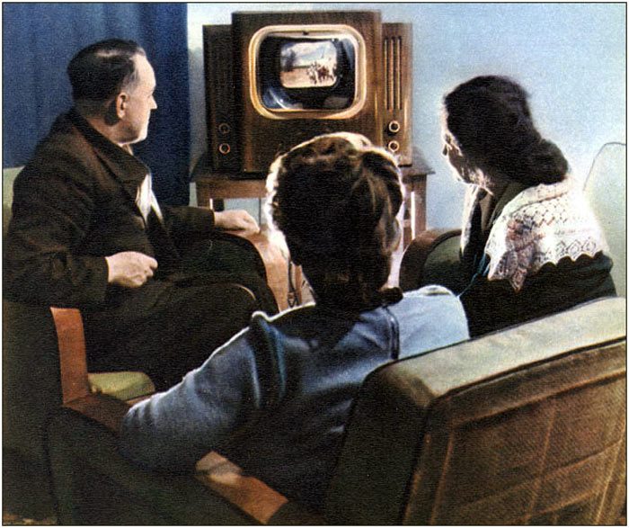 По правде сказать, в 1954-м и черно-белое телевидение в СССР не было ещё особенно массовым, большинство людей по-прежнему узнавали новости из газет или по радио.