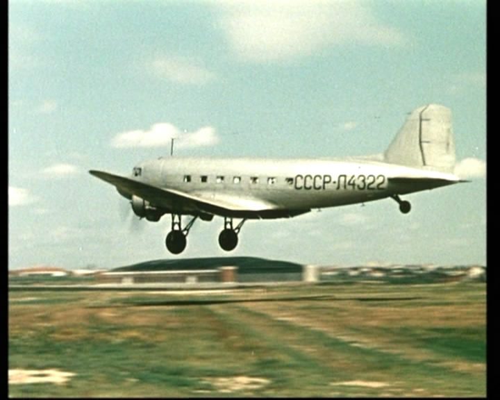 А в пассажирской авиации продолжали господствовать ЛИ-2 (ещё довоенный лицензионный американский «Дуглас»), один из которых совершает посадку на минский аэродром на этом кинокадре: