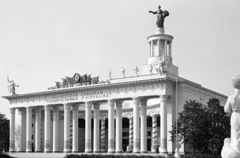 Постановление Совнаркома СССР и ЦК ВКП(б) «Об организации Всесоюзной сельскохозяйственной выставки в Москве» (ВСХВ) было принято 17 февраля 1935 г. Ее торжественное открытие прошло 1 августа 1939 г. На территории в 136 га разместилось более 250 строений и павильонов. Над художественным ансамблем комплекса работали архитекторы Владимир Щуко, Леонид Поляков, Дмитрий Чечулин, скульпторы Сергей Коненков и Георгий Мотовилов. У северного входа был установлен памятник «Рабочий и колхозница» Веры Мухиной. Эмблемой ВСХВ стала скульптурная группа, расположенная на 50-метровой башне главного павильона — тракторист и колхозница, поднявшие над головами сноп пшеницы.