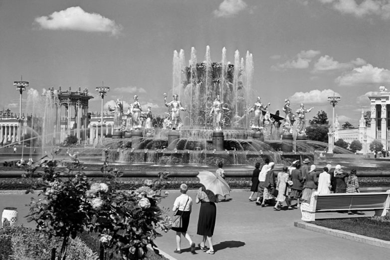 В 1950-1954 гг. на территории ВСХВ прошла глобальная реконструкция, которой руководили архитектор Анатолий Жуков и скульптор Евгений Вучетич. Был сооружен фонтан «Каменный цветок», построены арка Главного входа и новые павильоны. Визитной карточкой выставки стал фонтан «Дружба народов», созданный по проекту архитектора-художника Константина Топуридзе. В его центре расположен огромный сноп колосьев и подсолнухов, а вокруг — скульптурные фигуры девушек в национальных костюмах, символизирующие бывшие союзные республики СССР.