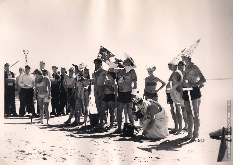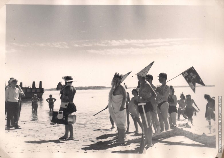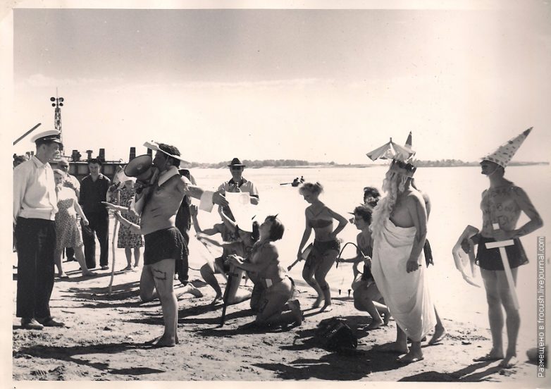 15 сентября 1965 года царь Нептун прибыл со своей свитой в гости к туристам теплохода «Алеша Попович» на зеленую стоянку в село Никольское в 6 часах хода от Астрахани.