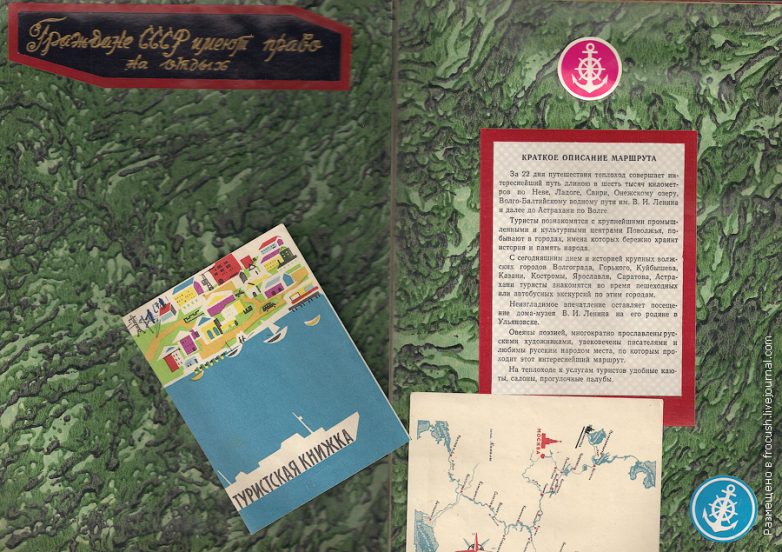 Участник Речного форума Werwolf любезно предоставил сканы фотоальбома о круизе. Некоторые комментарии к фотографиям сейчас могут показаться наивными, но советы, которые дает автор фотоальбома, актуальны и по сей день. Авторский текст набран курсивом. Приятного просмотра и прочтения!