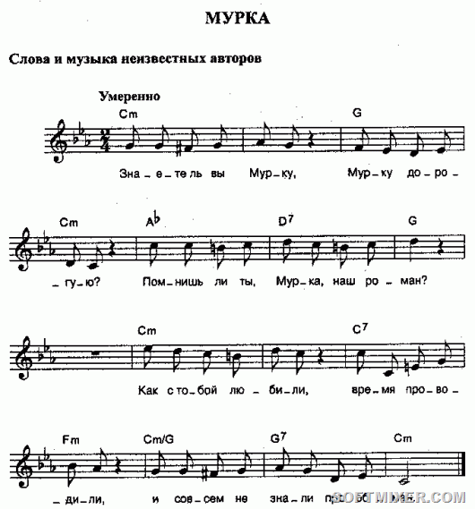 В одном из текстов содержится и первая загадка «Мурки». Как известно многим исследователям русского шансона и так называемой блатной поэзии начала прошлого века, у «Мурки» есть версии, согласно которым «банда» прибыла в Одессу «из Ростова», «с Петрограда» и «из Амура». А в одном из авторских текстов вообще написано «из-за МУРа». И этот вариант интересен больше других.