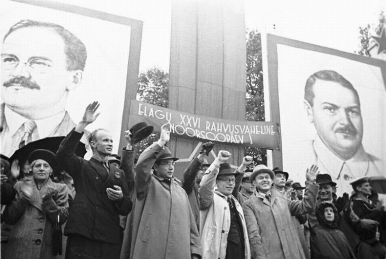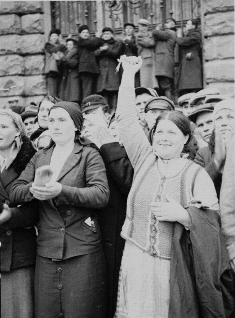 Люди приветствуют делегатов эстонской Думы в Таллине после присоединения Эстонии к СССР.
