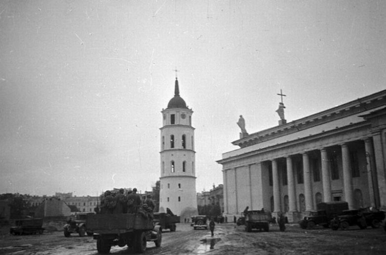 Литовская армия входит в Вильно. Литовская бронетехника на проспекте Мицкевича (позже проспект Сталина, проспект Ленина, ныне — проспект Гедиминаса)
