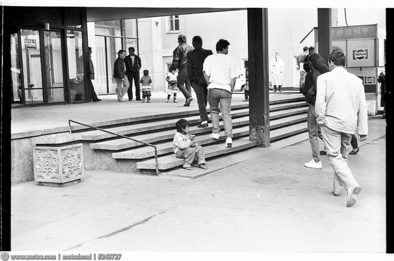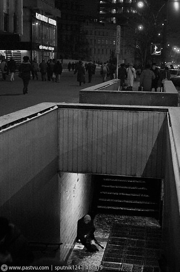 Садовая-Самотёчная улица. Из комментариев: «Парочка явно идет из Сосичной, которая в нескольких метрах позади них… Еще тот гадюшник был )) Правда просто так с улицы туда трудно было попасть )). Но зато была совсем неплохая «Кулинария», правда до разрухи, показанной на снимке. Да и парикмахерская была приличная. А пойди-ка сейчас найди нормальный уличный туалет поблизости.»