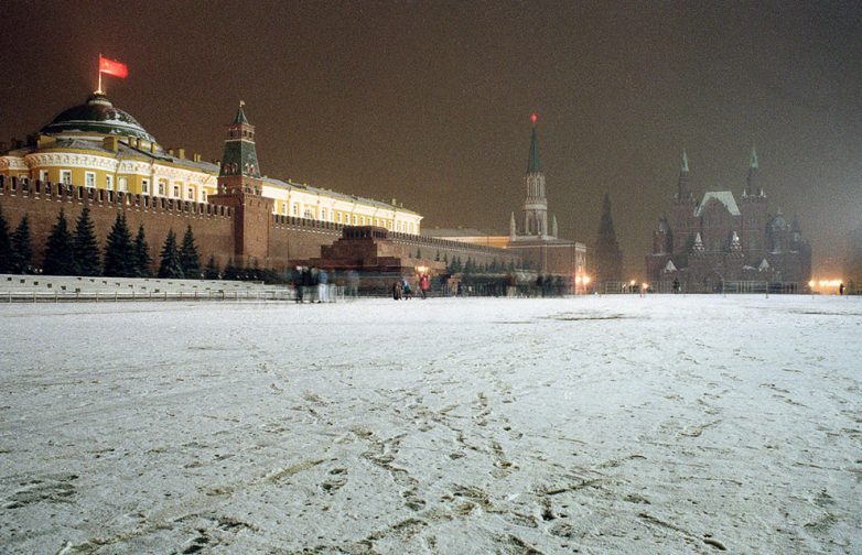 Советский флаг развевается над Кремлем последние дни. В Новый год 1991—1992 над Кремлем уже развевался новый флаг России.