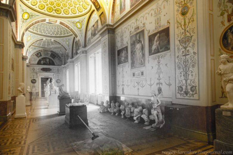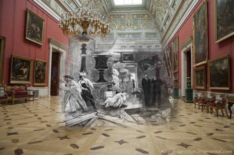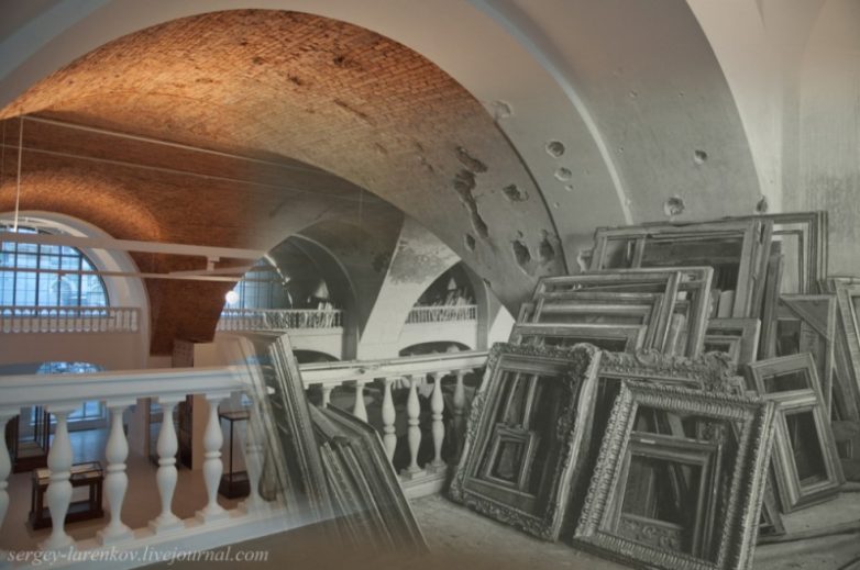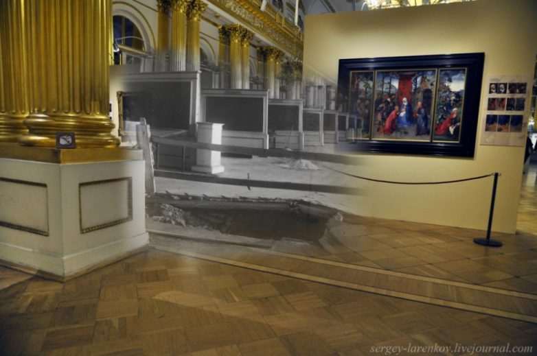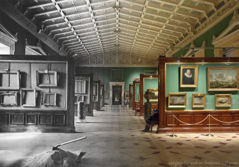 Давайте посмотрим сравнительные фотографии Эрмитажа в годы блокады и сегодня.