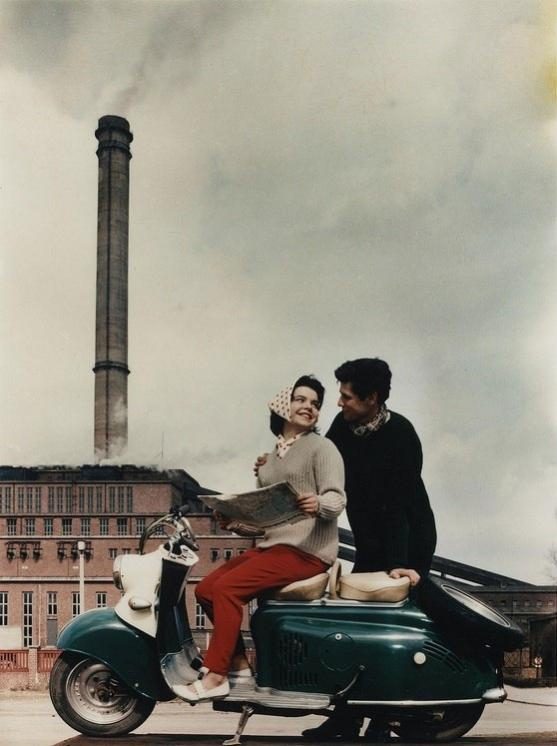 Пара на мотороллере возле электростанции Вокероде. 1963.
