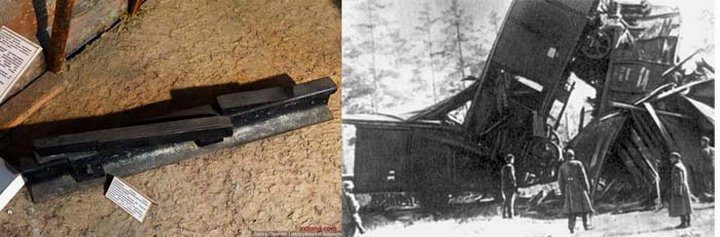 Зимой 1942/1943 года в условиях острого недостатка взрывчатых веществ партизанский умелец Шавгулидзе выдвинул оригинальную идею: пускать под откос эшелоны врага при помощи специального приспособления, действующего по принципу одноразовой железнодорожной стрелки. Система эта, состояла из клина и откосной рейки, по размеру железнодорожного рельса. Весило все это порядка 20 килограммов. Крепилось устройство к рельсам болтами и на все про все требовалось несколько минут. Наезжая на клин, переднее колесо паровоза накатывалось на наклонную плоскость. Поднимаясь по ней, колеса паровоза и вагонов по откосной рейке переводились с внутренней на наружную сторону рельса — и эшелон шел под откос.