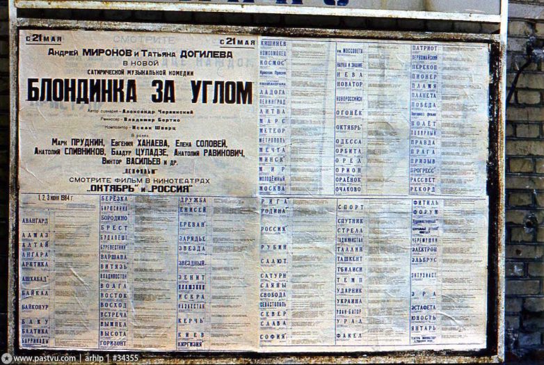 «В выходные дни, получив от родителей 15 копеек на кино, я бежал к ближайшей такой афише. Иногда там ждал полный облом: ничего стоящего нигде поблизости не оказывалось. Иногда частичный облом: афиша бывала старая или местные деятели успевали оторвать кусок с расписанием ближайшего кинотеатра, но я знал еще пару точек с такими афишами, и где-то обязательно была свежая или целая.»