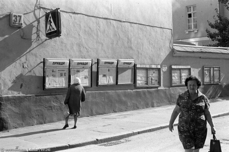 На фотографиях выделяются агитационные плакаты и магазины. Агитки привлекали взоры иностранцев. Универсальные и «по случаю» (1 мая, 9 мая, выборы и т.д.), они висели повсюду: на вестибюлях метро и на кинотеатрах, в парках и вдоль улиц…