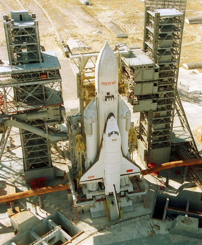 «Буран» изначально задумывался как военная система. Он создавался как ответ шаттлу. В СССР сделали вывод, что американский корабль сможет нести ядерные боеприпасы и атаковать ими территорию СССР практически из любой точки околоземного космического пространства. Для посадок космоплана «Буран» была специально оборудована усиленная взлетно-посадочная полоса (ВПП) на аэродроме Юбилейный на Байконуре. Полноразмерный аналог «Бурана», имевший обозначение БТС-002(ГЛИ), был изготовлен для летных испытаний в атмосфере Земли. В его хвостовой части стояли четыре турбореактивных двигателя, позволявших ему взлетать с обычного аэродрома. Свой первый и единственный космический полет «Буран» совершил 15 ноября 1988 года. Космический корабль был запущен с космодрома Байконур при помощи ракеты-носителя «Энергия». Продолжительность полета составила 205 минут, корабль совершил два витка вокруг Земли, после чего произвел посадку на аэродроме Юбилейный на Байконуре. Полет прошел без экипажа в автоматическом режиме с использованием бортового компьютера и бортового программного обеспечения, в отличие от шаттла, который традиционно совершает последнюю стадию посадки на ручном управлении.
