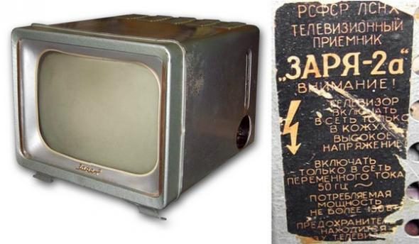 Телевизор «Заря» выпускался с конца 1950-х и был задуман как массовый и дешёвый (всего 118 рублей) телевизор. Он работал на 5 диодах, 12 лампах и вёл приём на 5 каналах. Размер изображения 210х280 мм. Главным недостатком этого телевизора было низкое качество звука. К тому же он был выполнен в металлическом корпусе, и на него попадало напряжение сети.