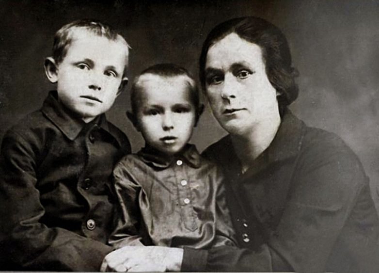 Иннокентий Смоктунович (Смоктуновский) с братом Володей и тетей Надеждой Петровной Чернышенко, воспитавшей их
