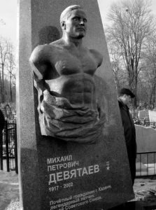 Михаил Девятаев, тринадцатый крестьянский сын, родился в Мордовии – окончил семь классов, а потом Казанский речной техникум (здесь-то его и «перекрестили»). Во время учёбы он ходил в аэроклуб – потому, после призыва в армию попал в Чкаловскую военно-авиационную школу. Войну начал 22 июня 1941-го – а уже 24-го сбил под Минском «Юнкерс», и удостоился ордена Красного Знамени. Вскоре лётчик был ранен, и продолжал службу в тихоходной авиации – однако в мае 1944-г, благодаря Покрышкину, вернулся в истребители…