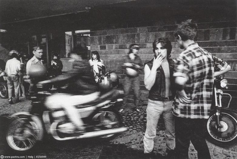 У памятника Гоголю, излюбенное тусовочное место неформалов. Это сейчас роком никого не удивишь, в конце 80-х же консервативно настроенная общественность возмущалась музыкой (“это не гармония, а скрежет”), а ее фанатов называла как минимум “тунеядцами". Вот как пишет журнал “Смена” о представителях андерграунда: