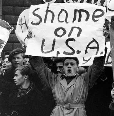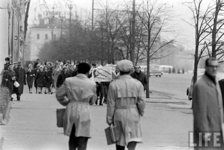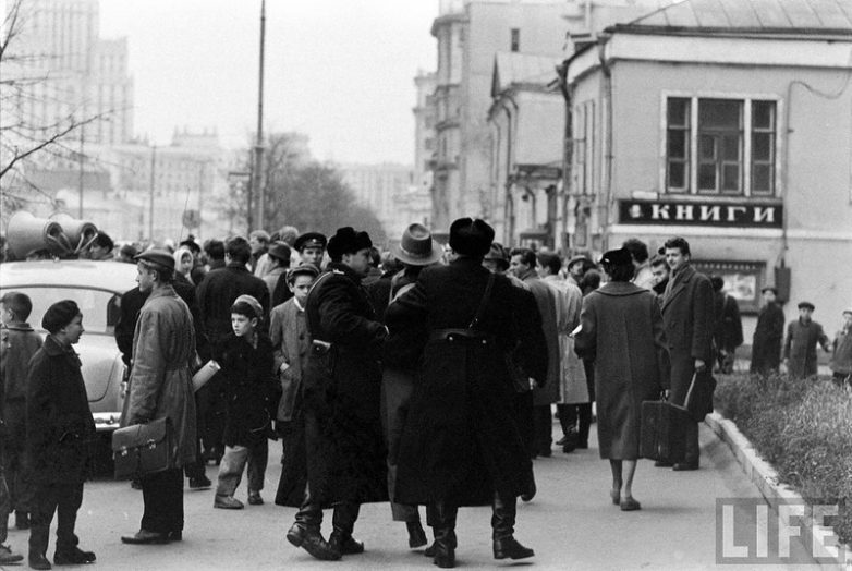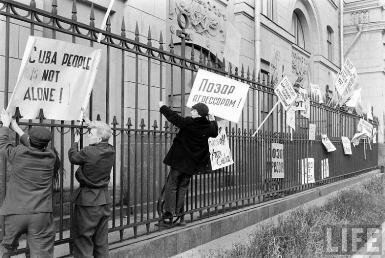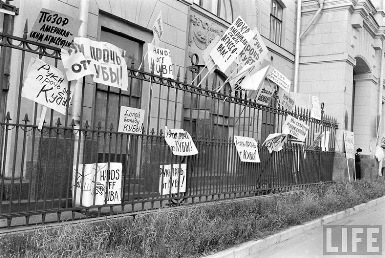 Серия фотографий, сделанных во время протестов москвичей у американского посольства в дни т.н. «Кубинского кризиса»; октябрь 1962-го года