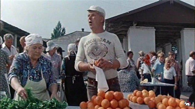 Вторая история была с тем же Кокшеновым, когда он в фильме по моему поручению продает апельсины на рынке, и я начинаю его кормить. Случилось так, что на тот момент в Ялте не было апельсинов.