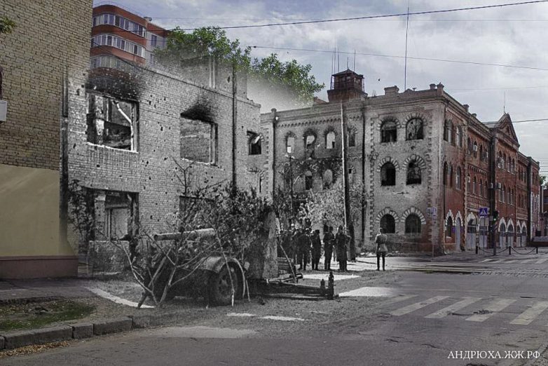 Пишет автор: «Британский журнал „After the Battle“ в ноябре 2014 года выпустил журнал, полностью посвященный Сталинградской битве. Историки Марк Холобоски и Александр Трофимов проделали очень крутую работу, сделав фотографии с той же точки, где был сделан оригинал, и дополнив их подробными комментариями. Я лишь выбрал наиболее интересные, и совместил архивные фото с современными.»