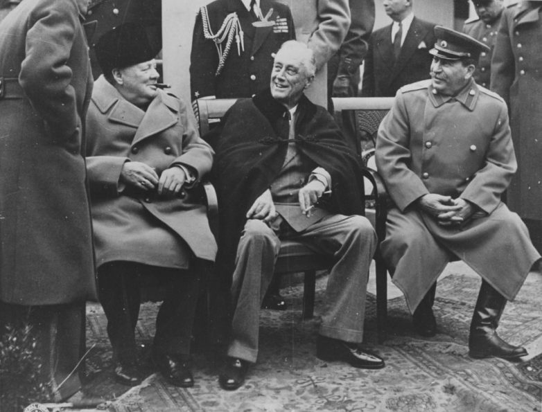Черчилль, Рузвельт и Сталин на Ялтинской конференции