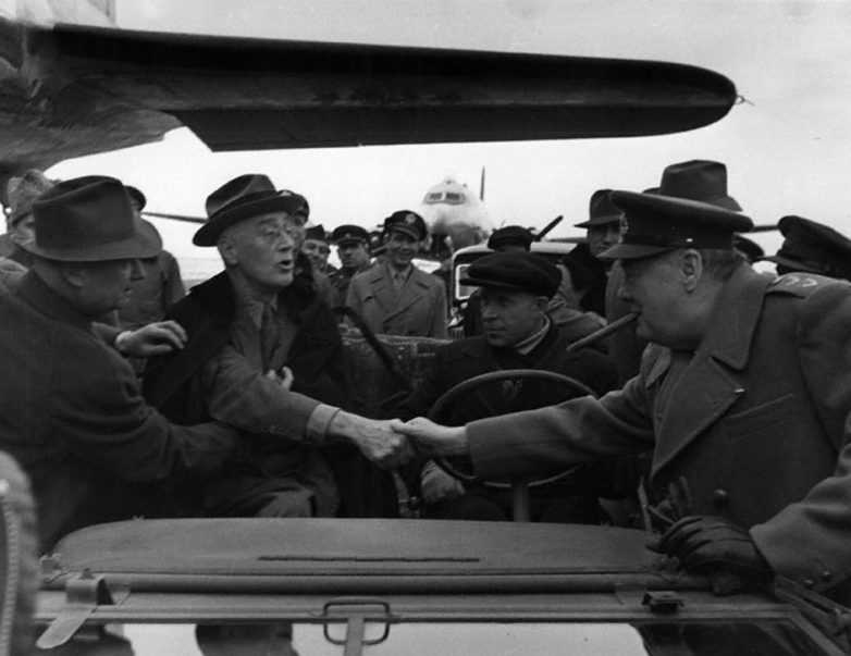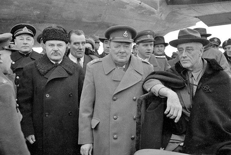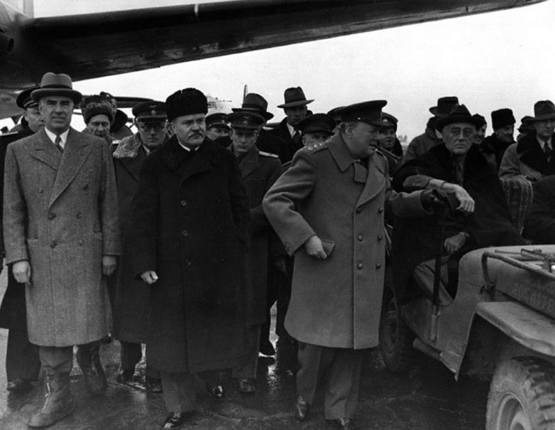 Встреча на аэродроме Президента США Ф. Д. Рузвельта, прибывшего на Ялтинскую конференцию. Среди присутствующих: В. М. Молотов, У. Черчилль, А. А. Громыко (слева направо) и др.