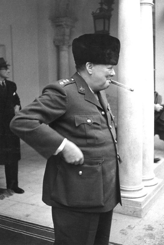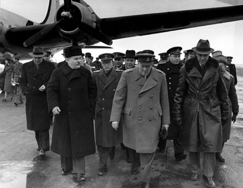 Премьер-министр Великобритании У. Черчилль, прибывший на Ялтинскую конференцию, на аэродроме