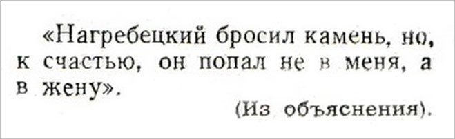 Впервые рубрика появилась в «Крокодиле» в 1959 году и просуществовала до самого закрытия журнала. Выписки из объяснительных, цитаты из теле- и радиопередач, выдержки из судебных решений, нелепые рекламные плакаты и дурацкие киноафиши — все это до сих пор вызывает смех.